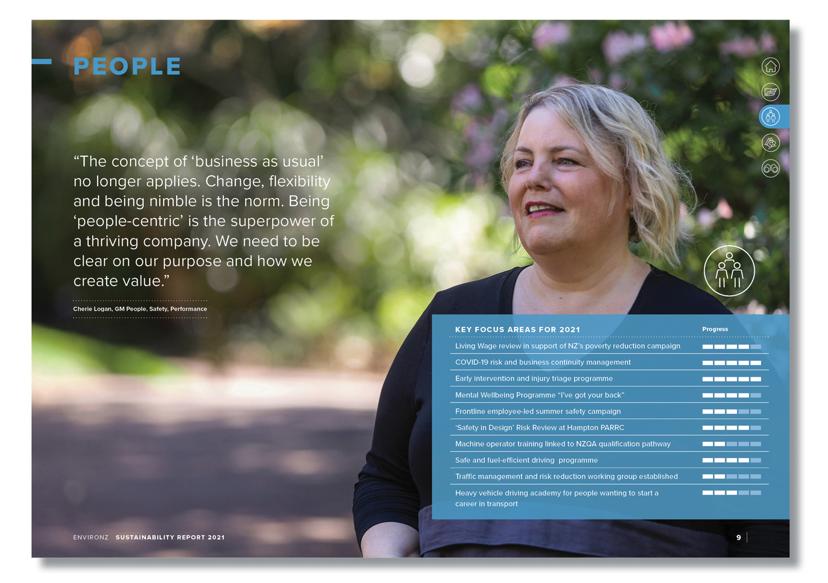 The development of the first ever Sustainability Report was a big step in EnviroNZ’s strategic path to the future. While the company was undergoing a rebrand, I was given the opportunity to develop a look and feel that was standing on its own and connected the old and new brand in a subtle way.