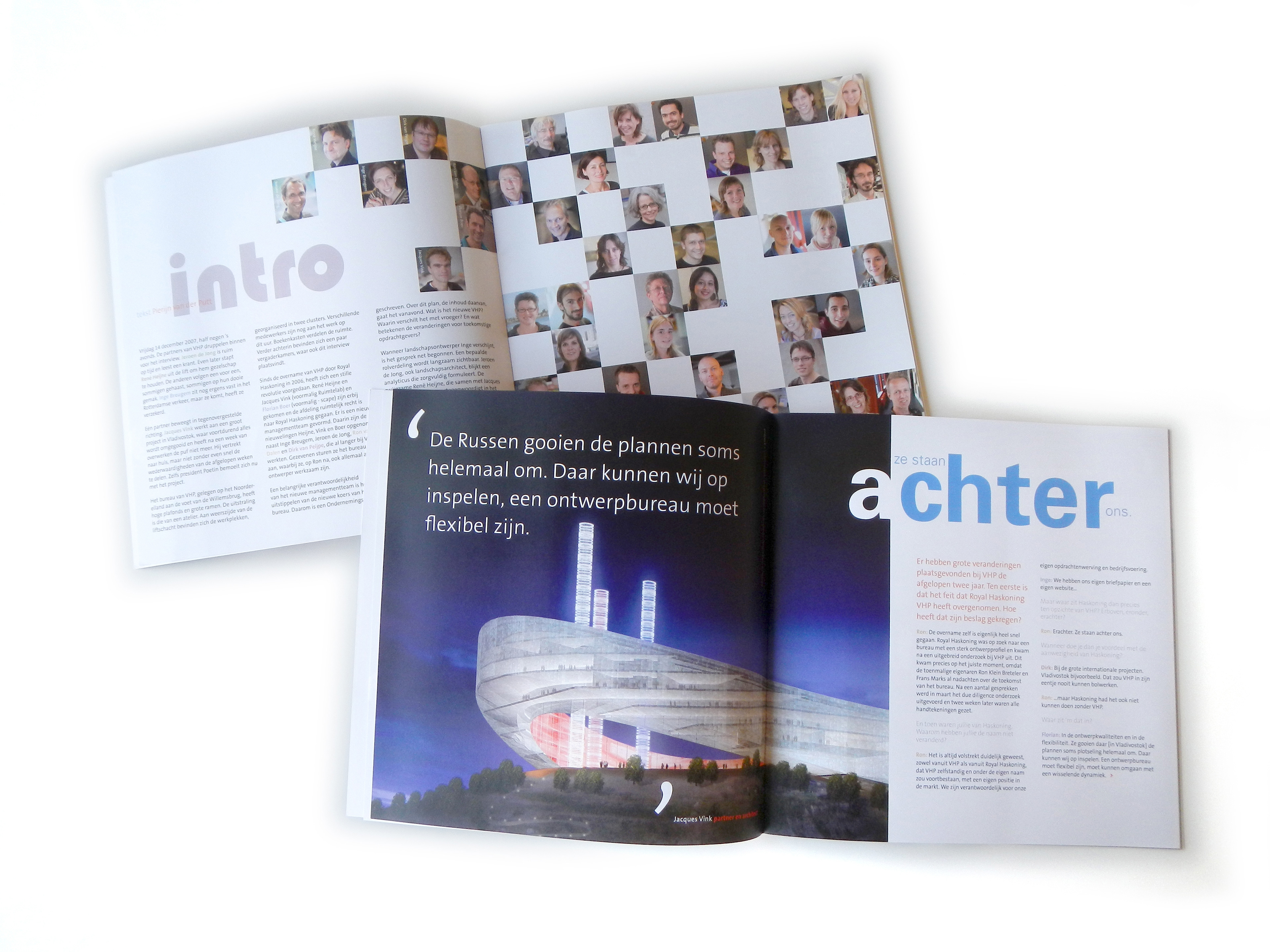 DNA magazine was initiated to present VHP Architects in a more interesting way than just a simple brochure. Collaborating with a copywriter who delivered copy of interviews with the directors, I was given total creative freedom over content, layout design and visual illustration / photography. Each spread had a bespoke, illustrative approach while the consistent typography tied it all together.